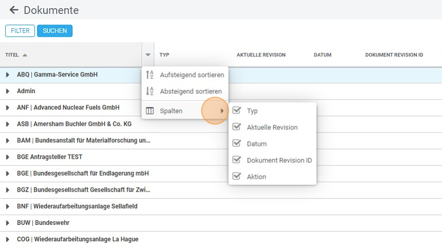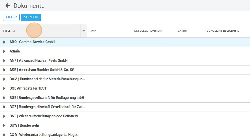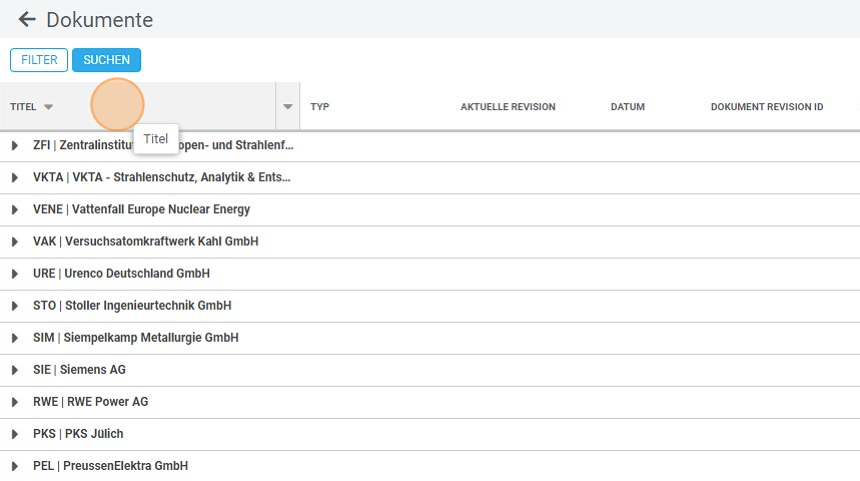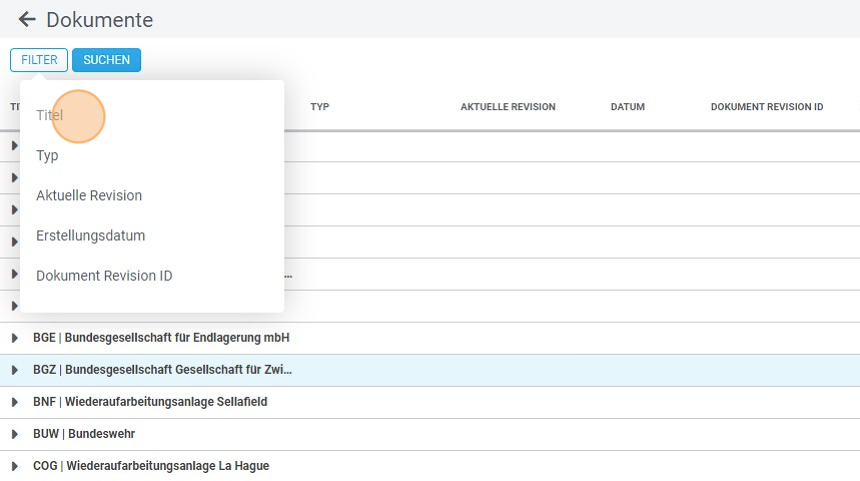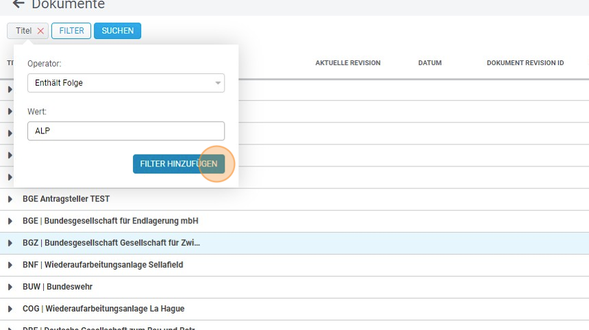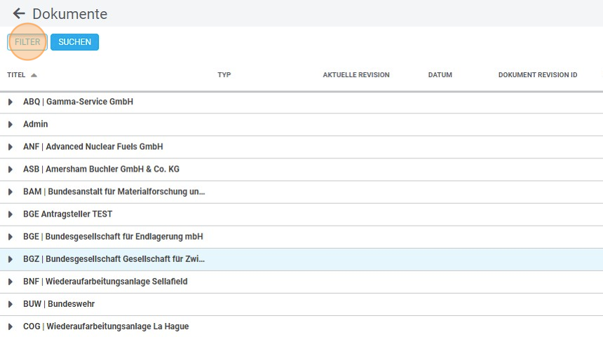 4. Klicken Sie auf "FILTER" um nach einem Dokument zu suchen