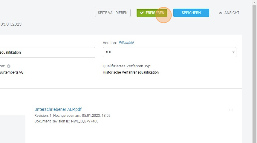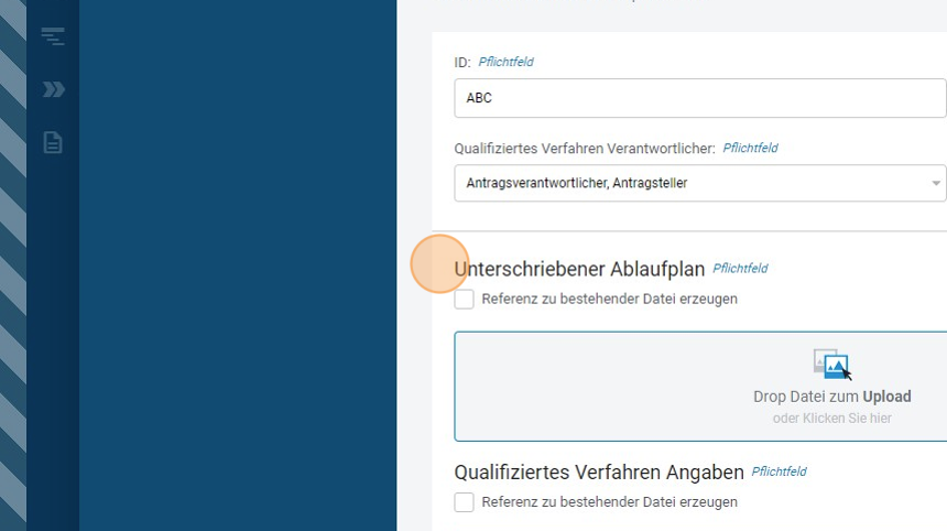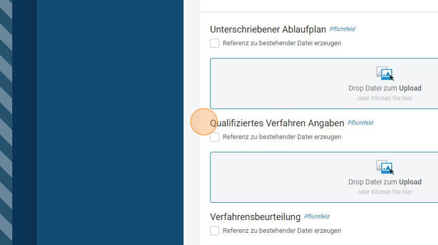 6. Für die historische Verfahrensqualifikation müssen folgende Informationen definiert werden: "Unterschriebener Ablaufplan"