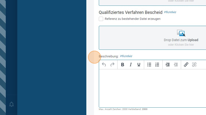 Tip: Laden Sie eines oder mehrere Dokumente hoch, die sich aus den außerhalb des NWL stattgefundenen Prozessen ergeben haben