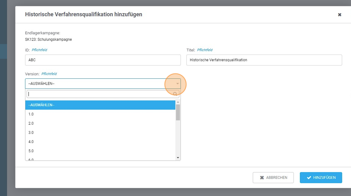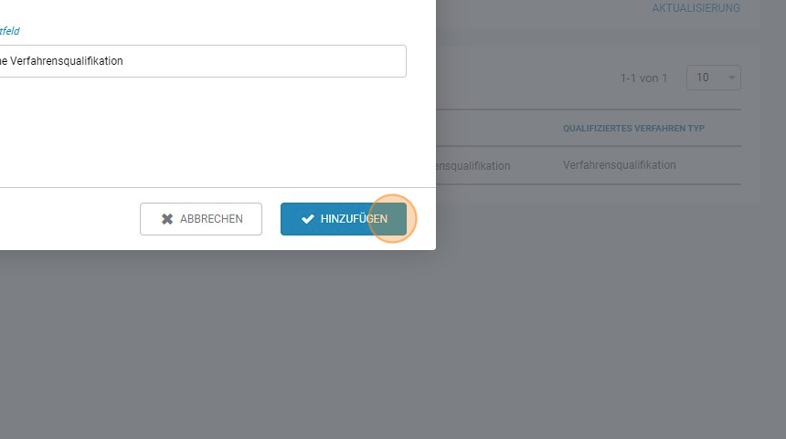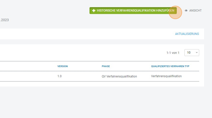 3. Klicken Sie auf "HISTORISCHE VERFAHRENSQUALIFIKATION HINZUFÜGEN"