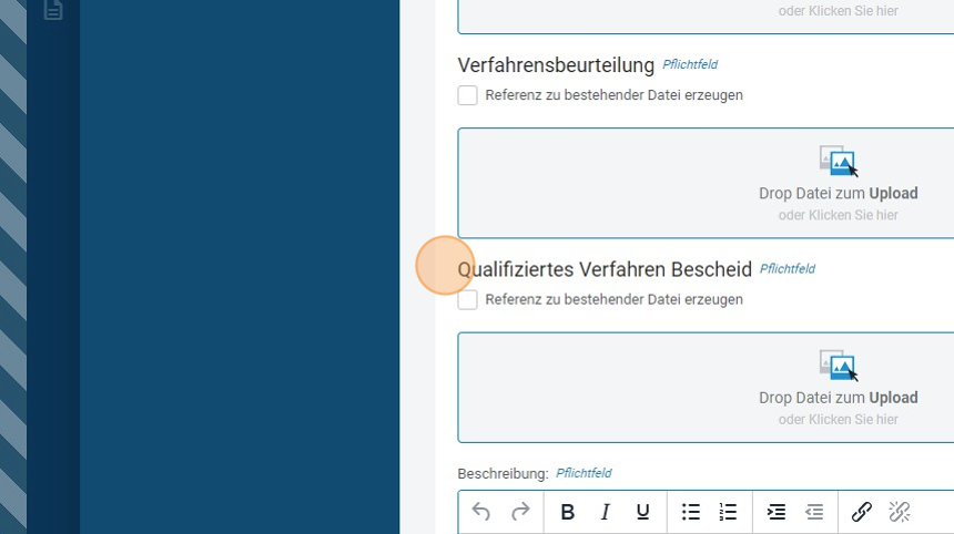 9. Für die historische Verfahrensqualifikation müssen folgende Informationen definiert werden: "Qualifiziertes Verfahren Bescheid"