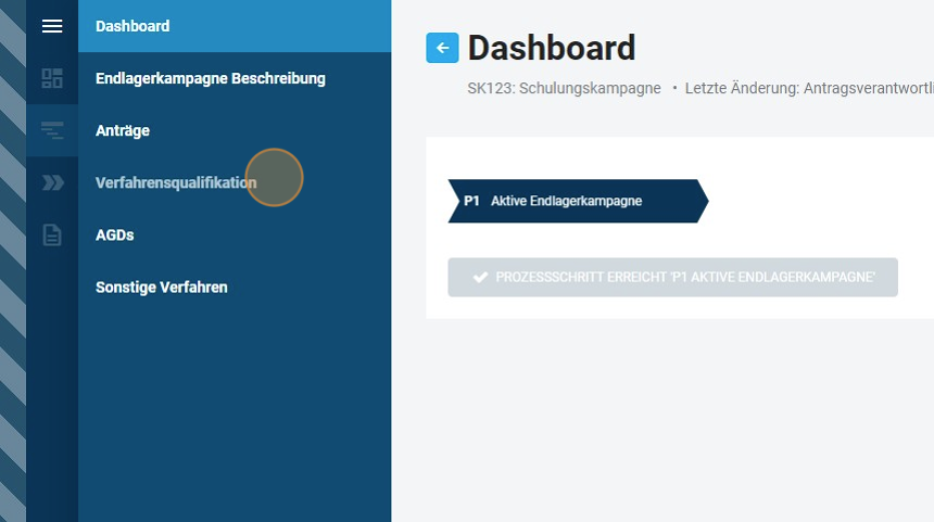 2. Öffnen Sie eine aktive Endlagerkampagne und Klicken Sie auf Verfahrensqualifikation