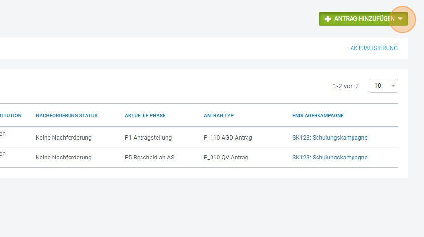 1. Klicken Sie auf "ANTRAG HINZUFÜGEN"