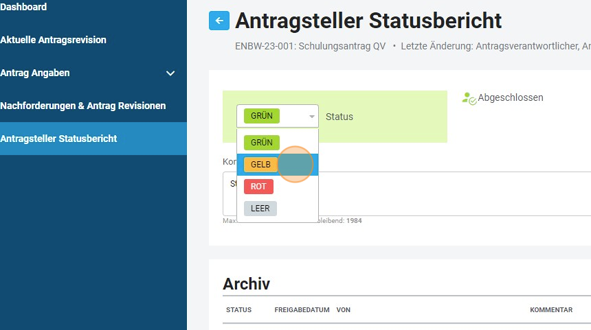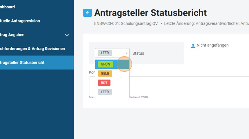 2. Wählen Sie den grundsätzlichen Status des Antrags.