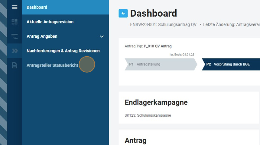 1. Klicken Sie auf "Antragsteller Statusbericht" (vgl. für SV/BGE)