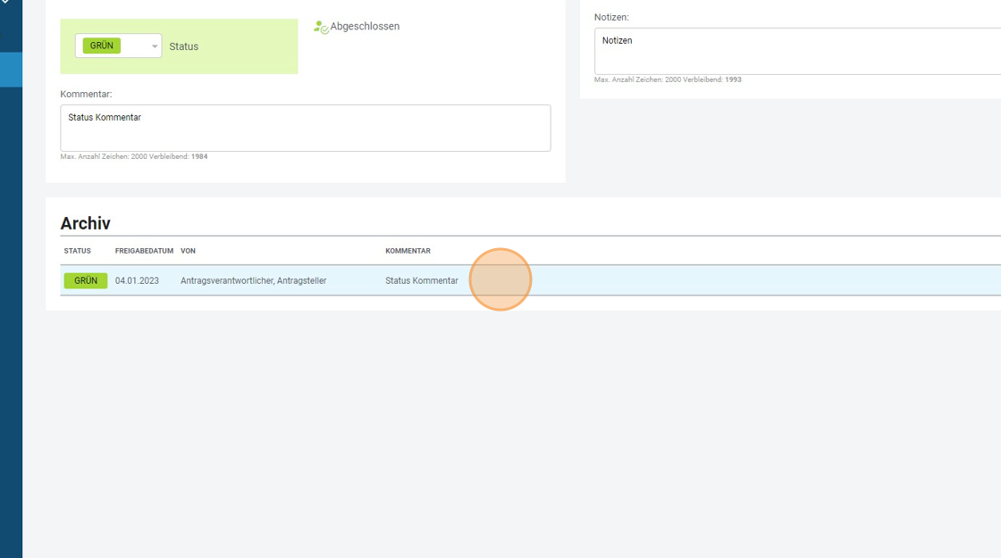 9. Der neue Status erscheint ebenfalls im Archiv. Sie erhalten eine einfach verfolgbare Statushistorie mit den wichtigsten Informationen
