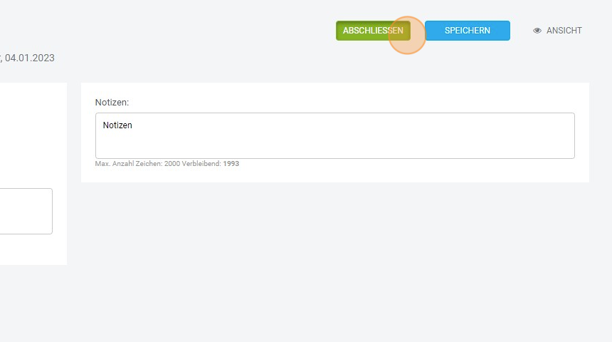 6. Klicken Sie auf "ABSCHLIESSEN" um den Status revisionssicher festzuhalten