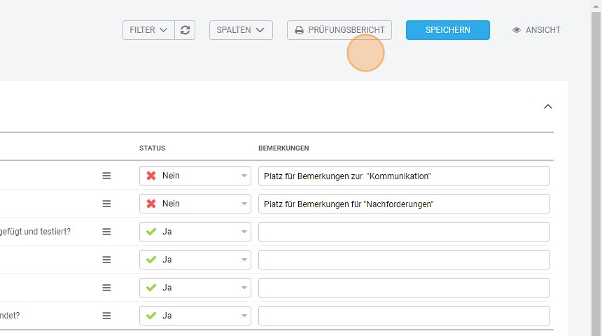1. Zur Archivierung und Dokumentation kann ein Prüfungsbericht generiert und als .PDF heruntergeladen werden